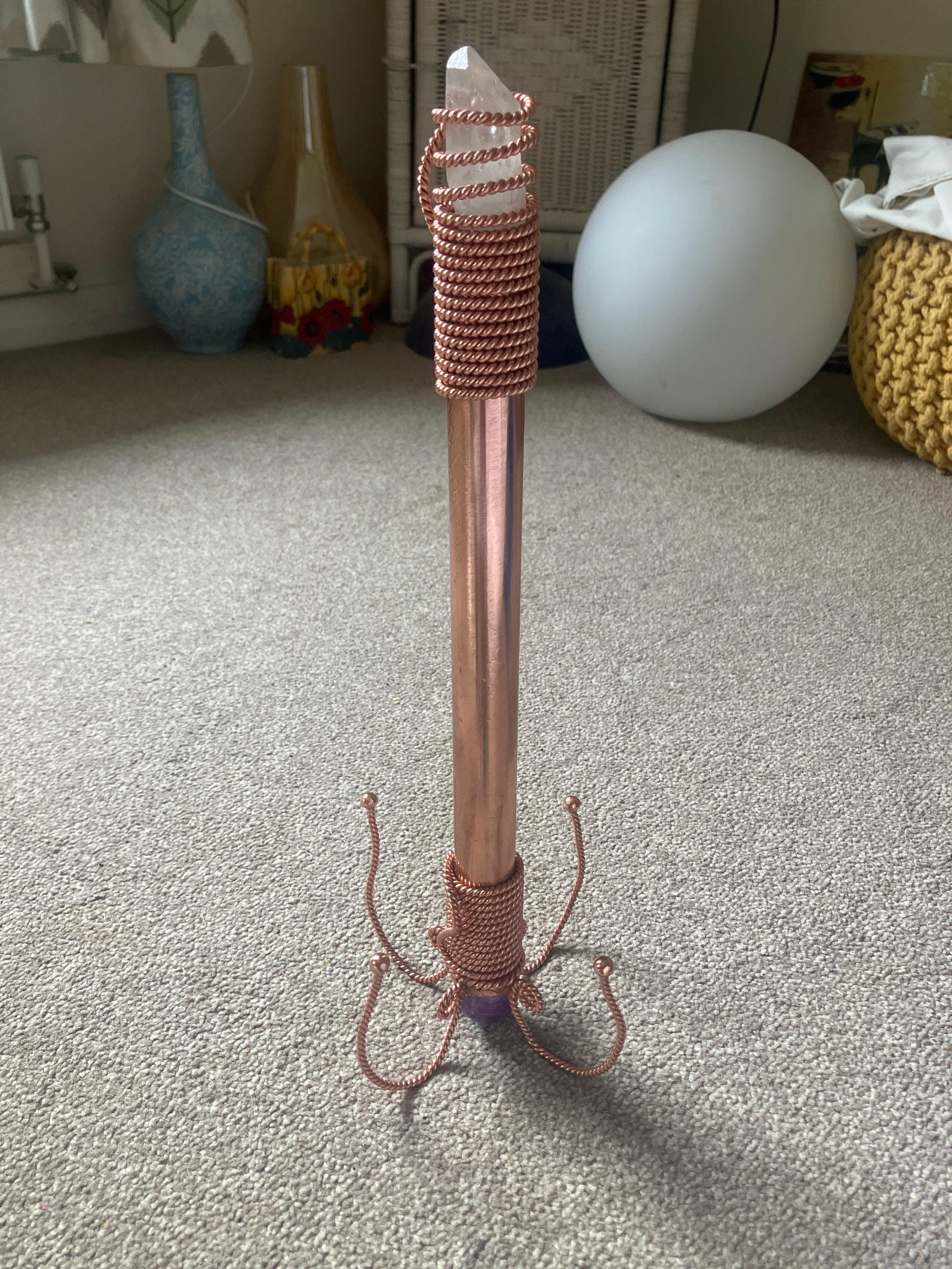 Orgonite Energy Wand – Copper & Crystal Cloudbuster Style (40 cm)