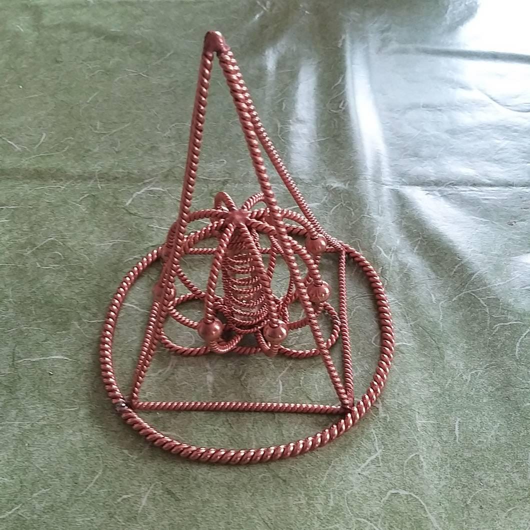 With a 12 cm base and ~19 cm sides, this pyramid is built entirely from 99.99% pure red copper, following precise sacred geometry craftsmanship
