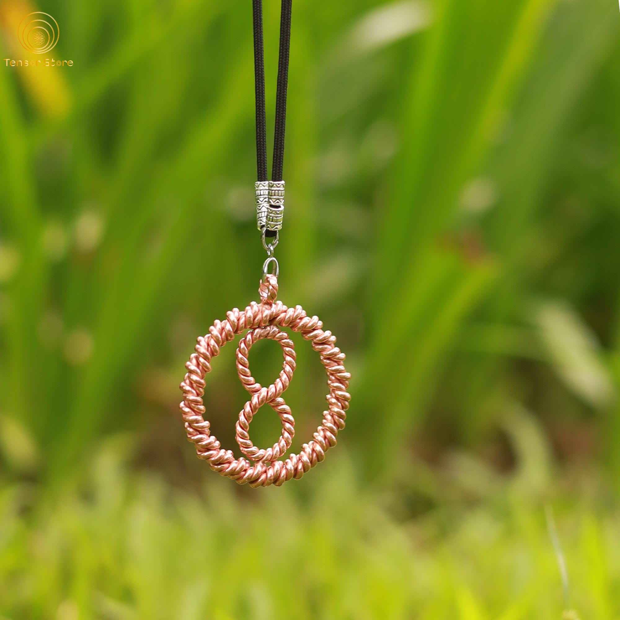 This handcrafted Tensor Pendant combines sacred geometry with artisanal copperwork. Made from 99.9% pure copper, the pendant features a 1/4 cubit double-twisted ring precisely tuned to the 177 MHz frequency, symbolically connected to grounding, vitality, and energetic harmony.