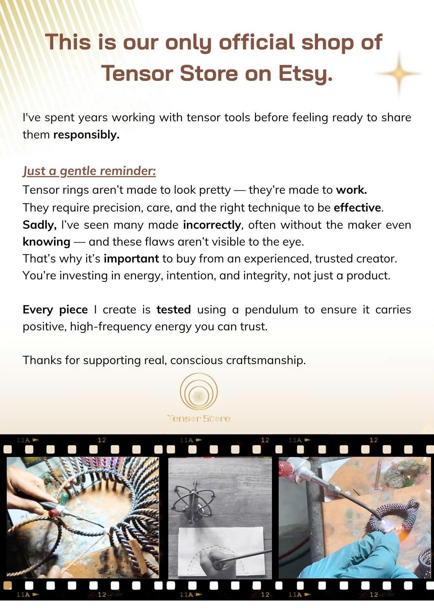 ✨ This Triple Frequency Tensor Ring Pendant is a finely handcrafted energy piece made from 99.9% pure copper, designed to combine three resonant frequencies in one harmonious form. Each layer is meticulously formed following the Tensor Ring principle, representing balance, coherence, and energetic alignment across multiple vibrational fields.