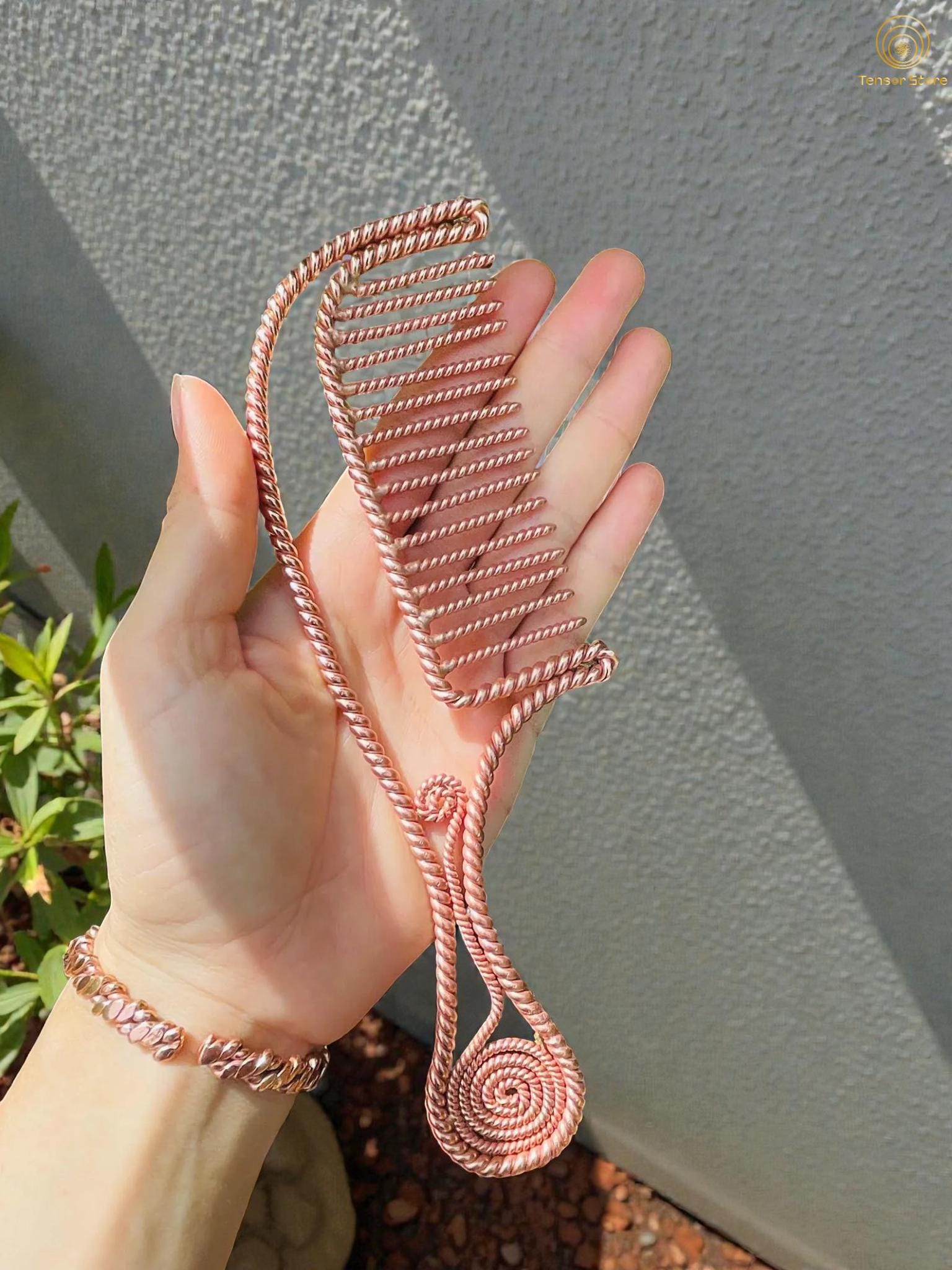 Made from 99.99% pure copper, this energy-inspired comb combines traditional craftsmanship with a frequency-based form often associated with balance and grounding. Each piece is shaped by hand, allowing the copper’s natural warmth, texture, and character to remain fully present.