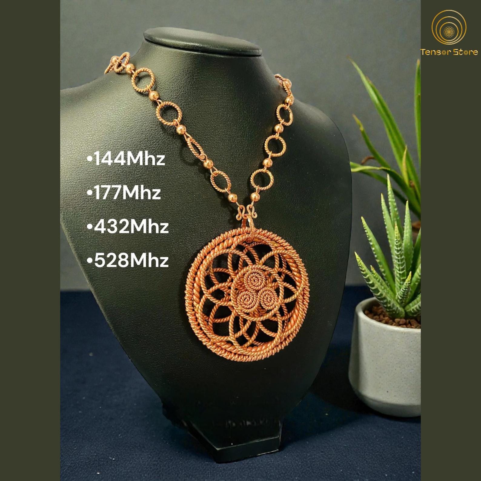 ✨ Elevate your energy and reconnect with the rhythms of the universe with this Sacred Geometry Copper Necklace. Handcrafted with 99% pure red copper, the pendant features a stunning blend of the Flower of Life and Triskelion, fine-tuned to four powerful Solfeggio frequencies: 144 MHz, 177 MHz, 432 MHz, and 528 MHz.
