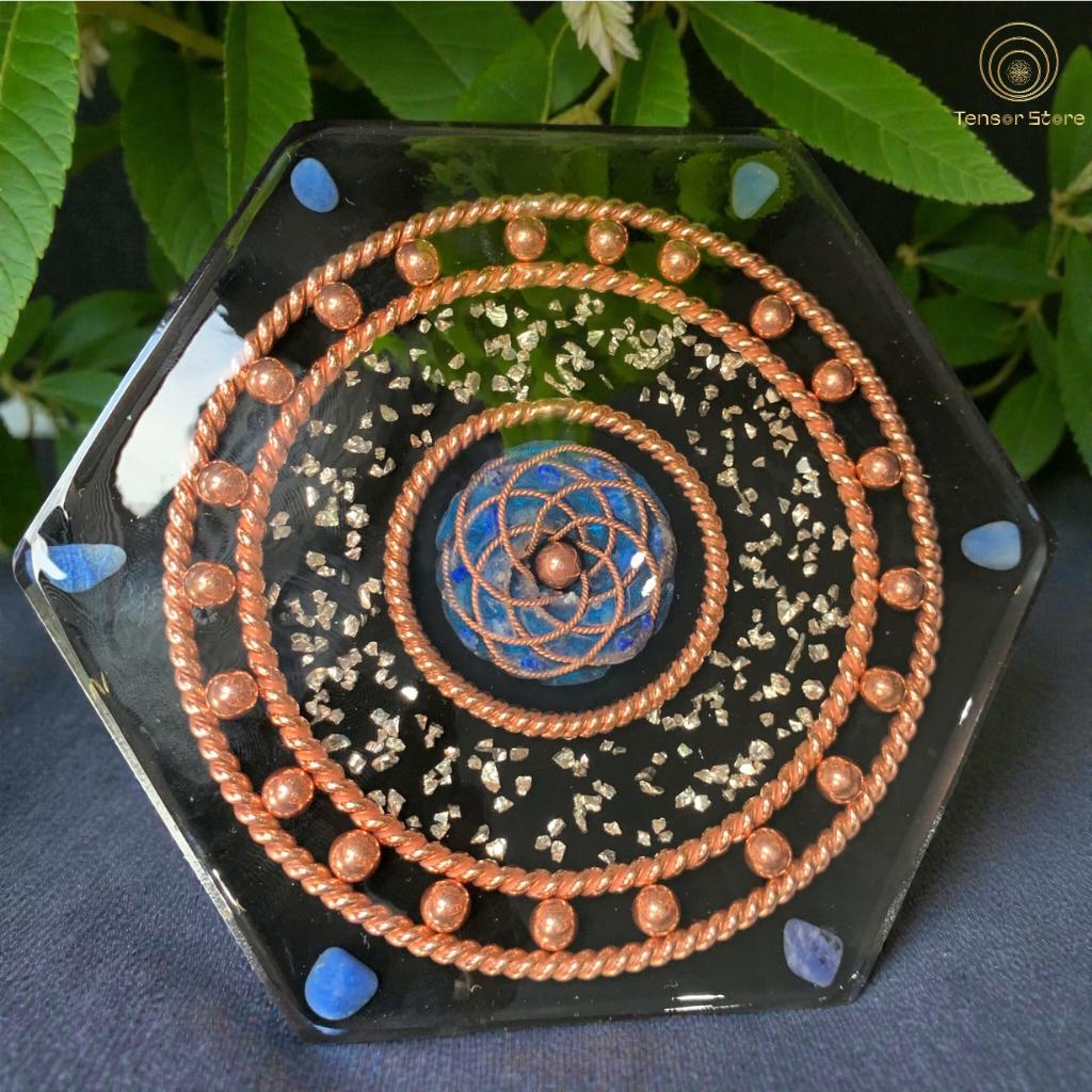 Inside the pyramid, twisted copper coils and circular arrangements form a balanced geometric layout inspired by sacred geometry. These shapes are often associated with flow, harmony, and the natural order found in the universe.